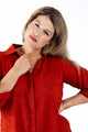 • Chemise unie avec motif fleurs en relief-Paprika-6