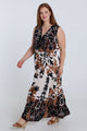 Robe longue en viscose imprimé feuillage